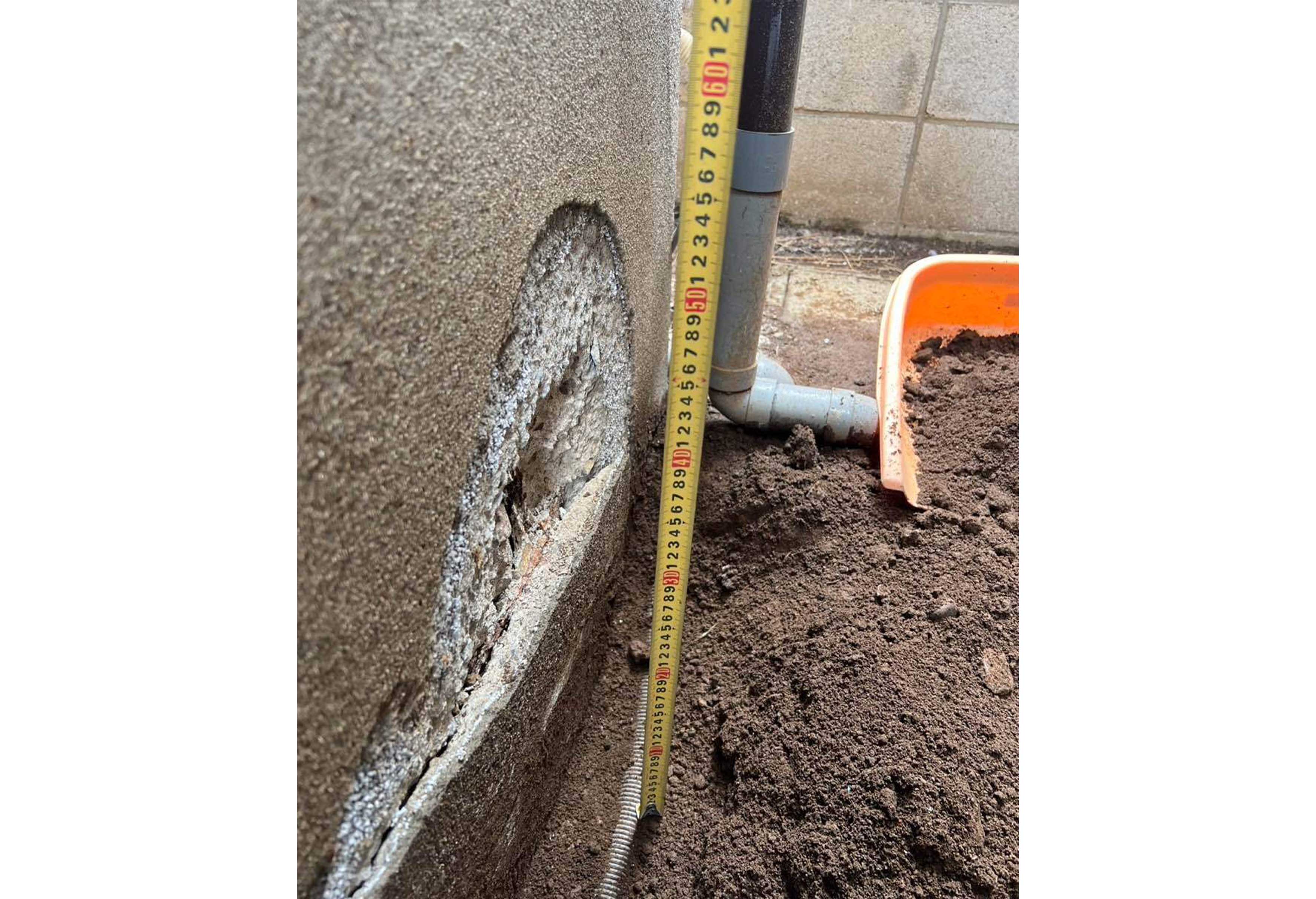 「住宅の基礎が地震の影響なのか、コンクリートが割れて鉄筋が見えてしまっていました。 既存の基礎に補強アンカーを打ち込み、枠を組んで新しいコンクリートを打ち込みました。 今回のような劣化は、早めの対応で費用を抑えつつ安全性を保てます。」