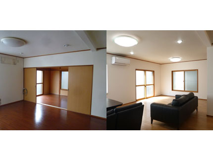 最初は間仕切の引き戸を入れ替える予定でしたが思い切って1つの空間に広げました。