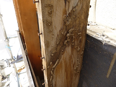 こちらの写真は窓の上の外壁を剥がしたところです。
