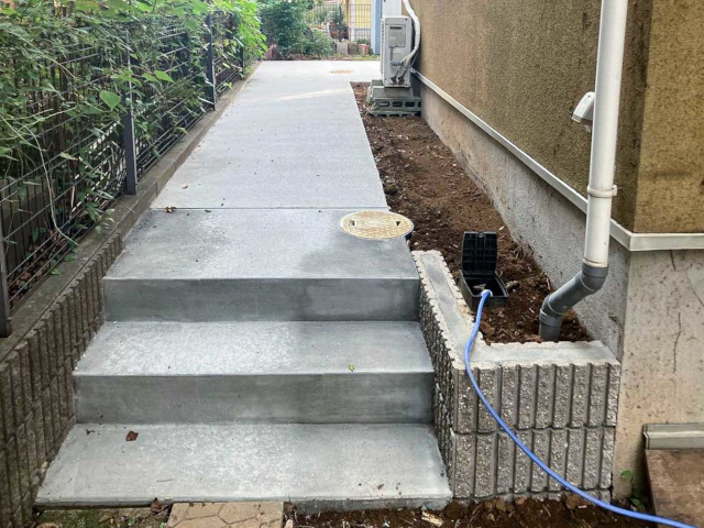 排水性にも配慮しながら、勾配・通路幅を確認し施工を進めました。