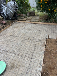 コンクリート打設前に配筋を行い、十分な強度を確保。