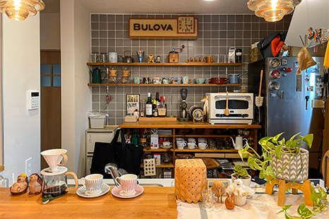 お気に入りの食器や雑貨を並べたキッチン収納。 「見せる」と「使いやすい」を両立した、暮らしに馴染む空間です。
